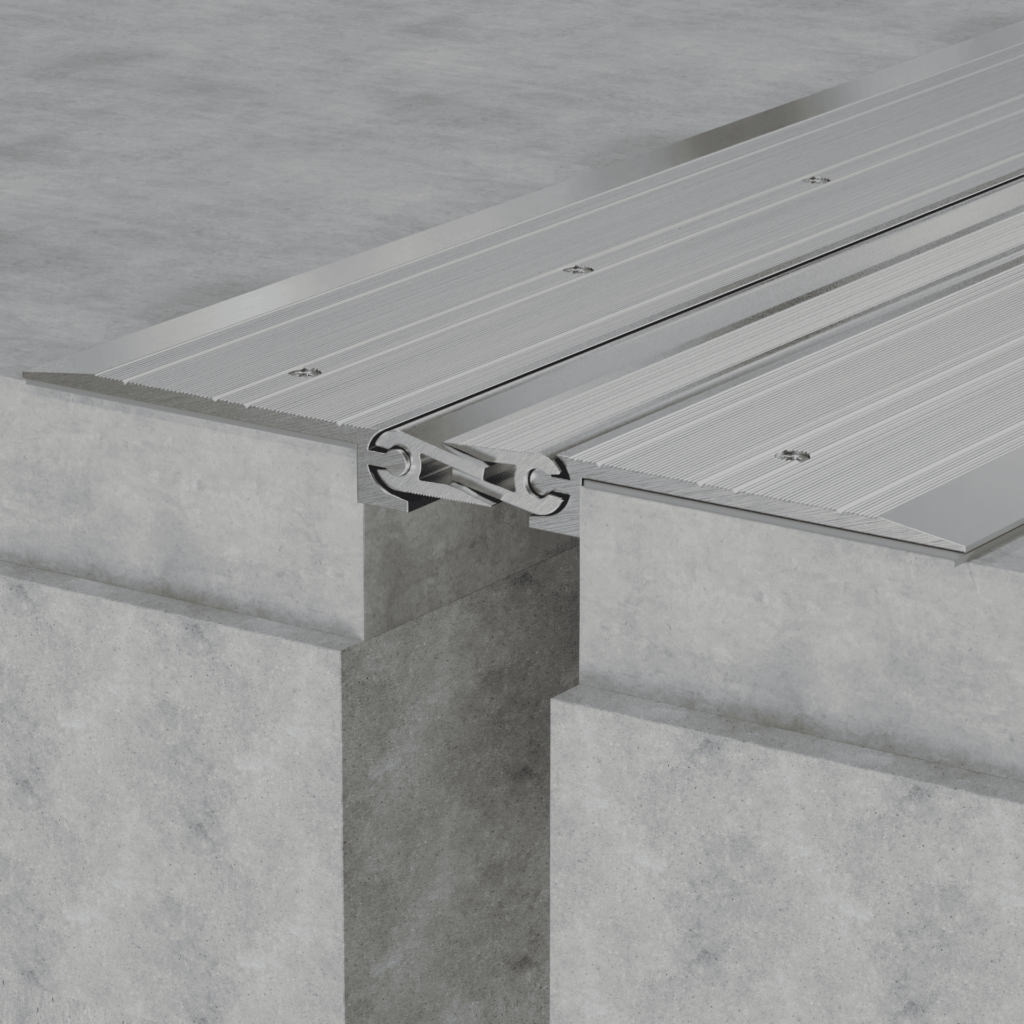 Конструктивно деформационный шов ДШ-АЛ состоит из 3-метровых алюминиевых направляющих со скользящим соединением. Алюминий ГОСТ 4784 изготавливается в соответствии с ГОСТ 8617. Изделие производится по ТУ 5775-001-18023964-2013. Конструкция шва препятствует попаданию внутрь шва грязи, обеспечивает устойчивость к износу.Шов стойкий к маслам, бензину, битуму и другим агрессивным средам. Устойчив к старению. Группа горючести – НГ и подходит для использования в учреждениях с высокими требованиями к пожарной безопасности (торговые центры, гос. учреждения, школы, дет.сады, места массового скопления людей).