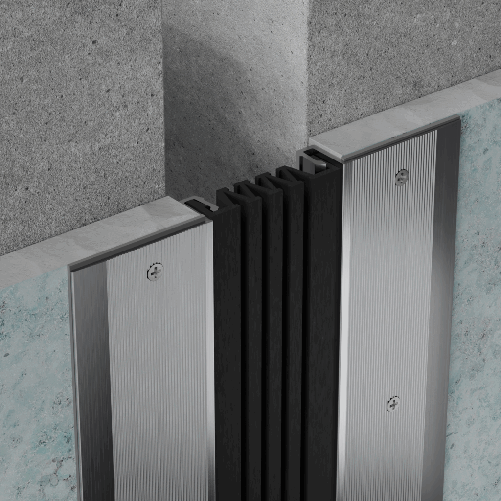 Деформационный шов ДШ-С состоит из алюминиевых направляющих и компенсатора из ПВХ или ТЭПа. Конструкция шва препятствует попаданию внутрь шва грязи и воды, обеспечивая водонепроницаемость и устойчивость к износу при тяжелых эксплуатационных нагрузках. Швы не требуют проведения профилактических работ и устойчивы к старению. При выходе из строя компенсаторы могут быть легко заменены. Цвет компенсатора может быть изготовлен любой по каталогу RAL.